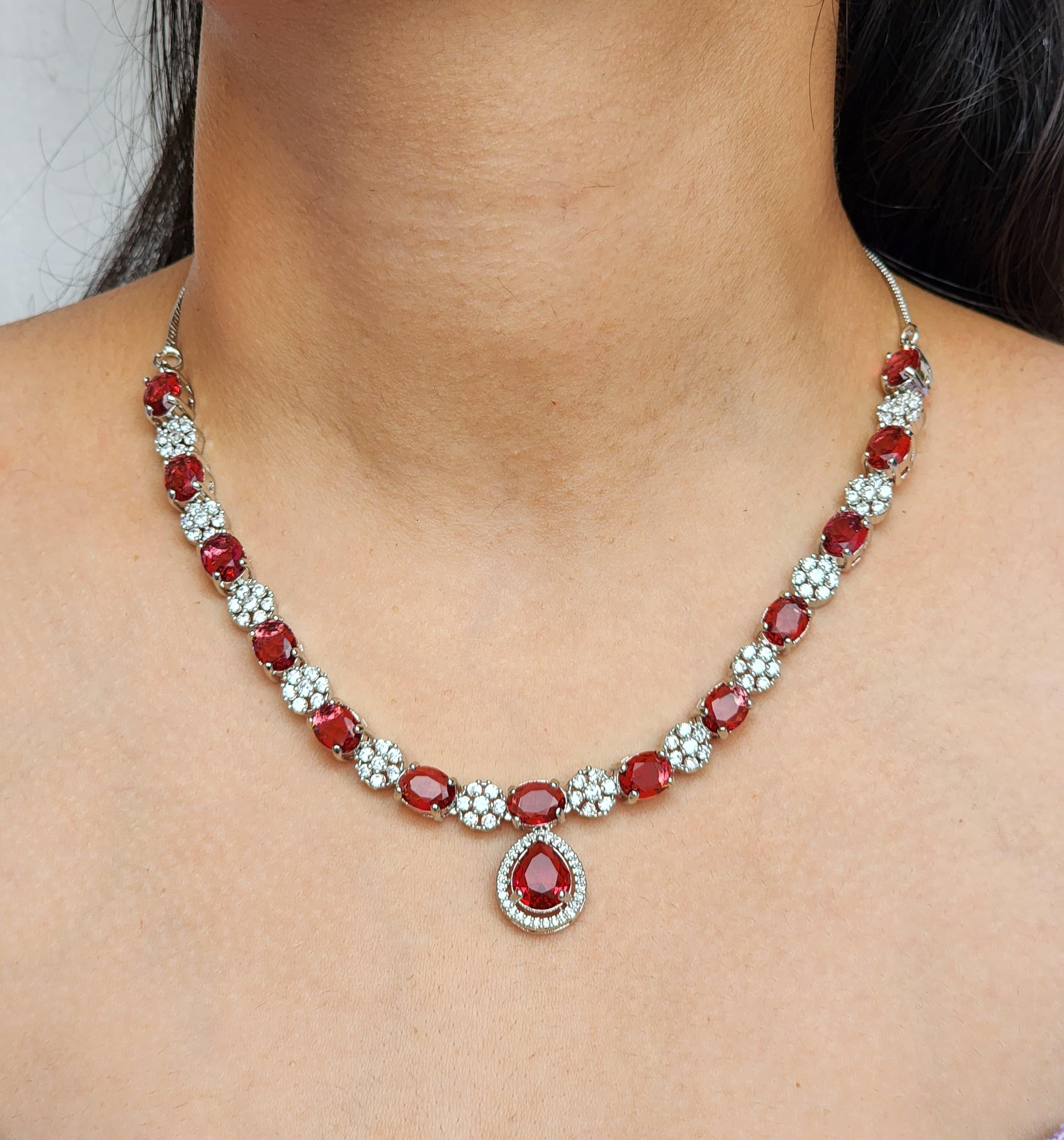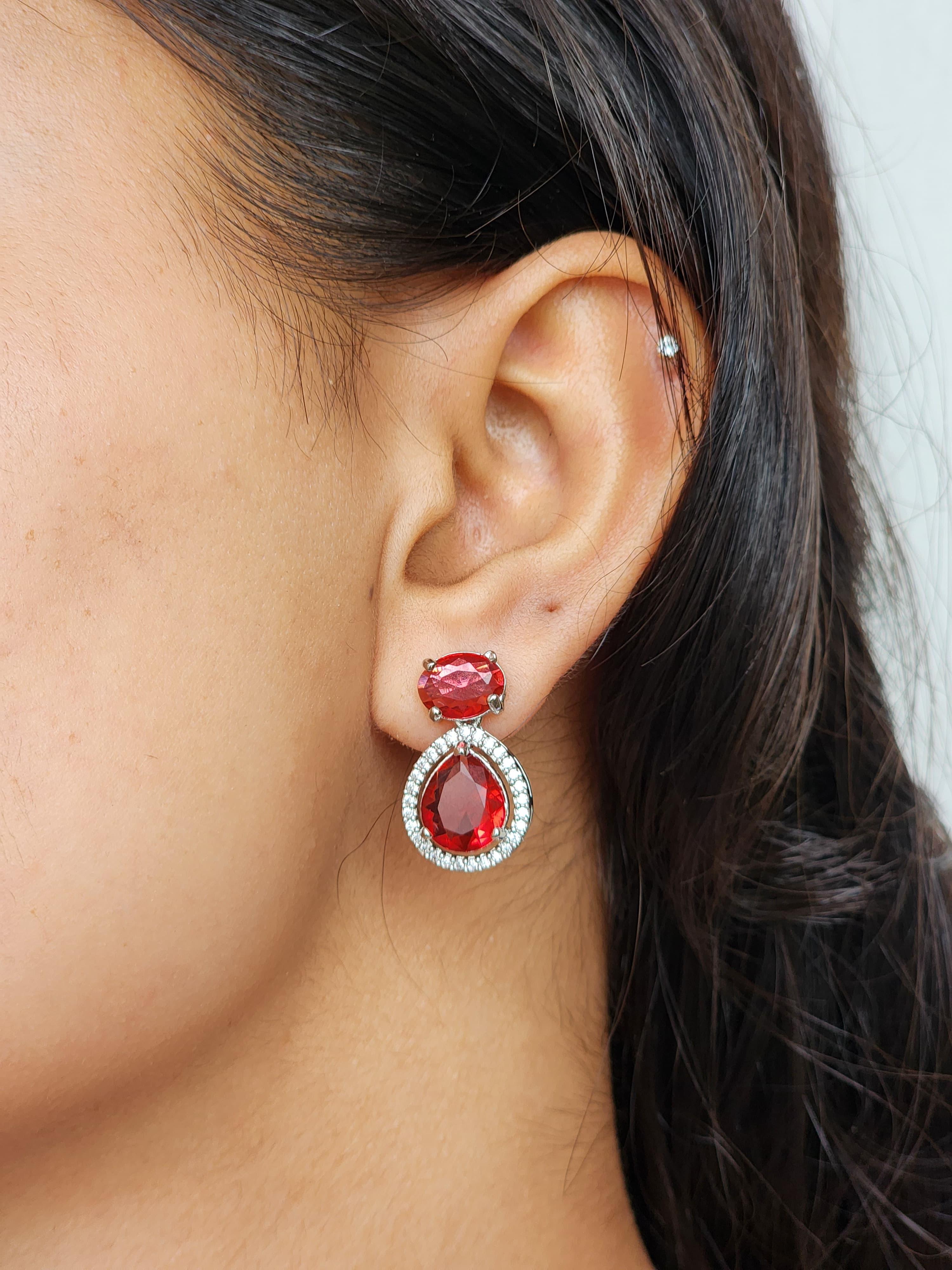 * Red American Diamonds (high-grade cubic zirconia) – Precision-cut in oval and teardrop shapes, mimicking the richness of rubies