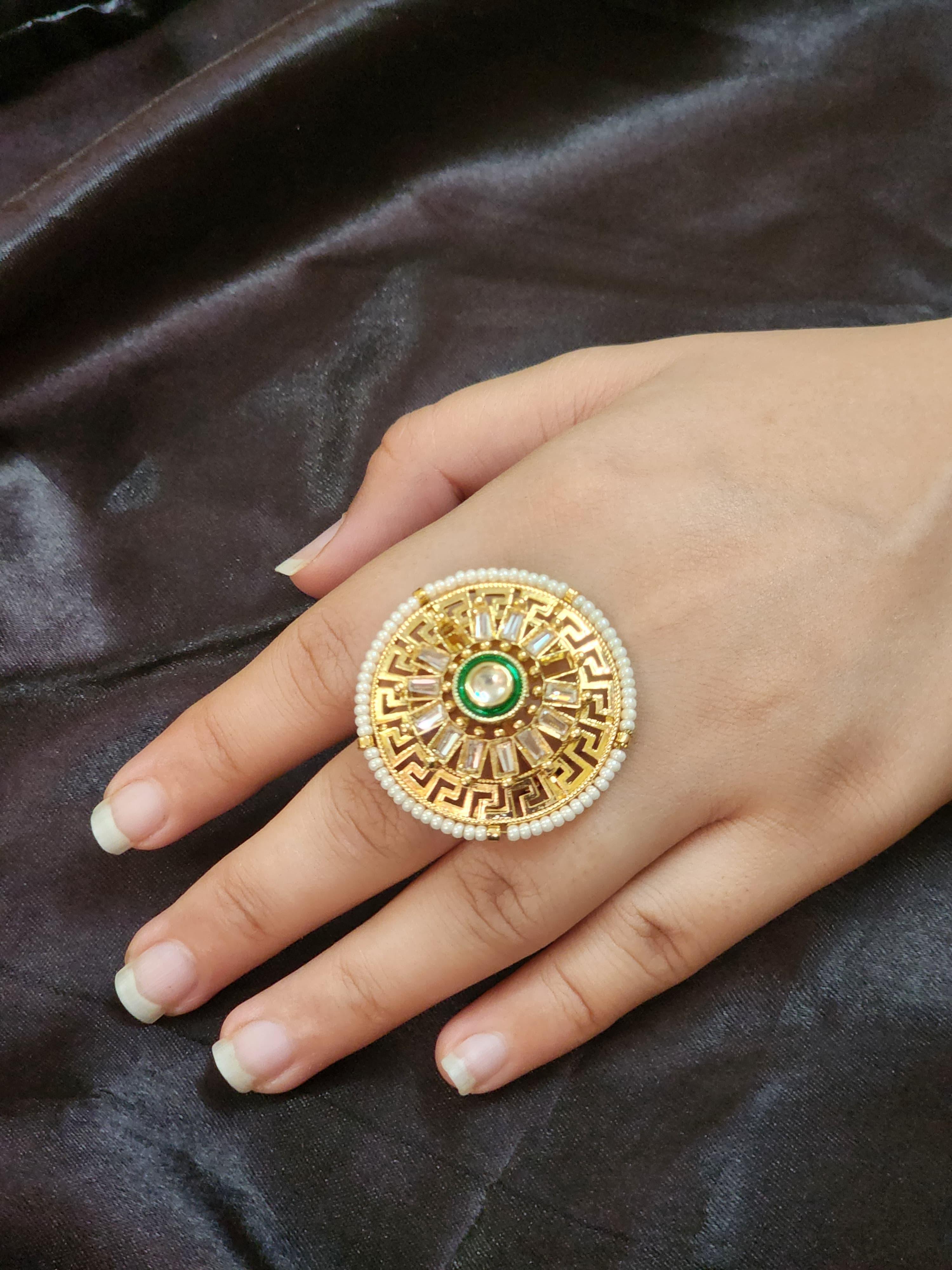 This ring is not just an accessory but a statement – perfect for festive occasions, weddings, and cultural celebrations where grandeur takes center stage.