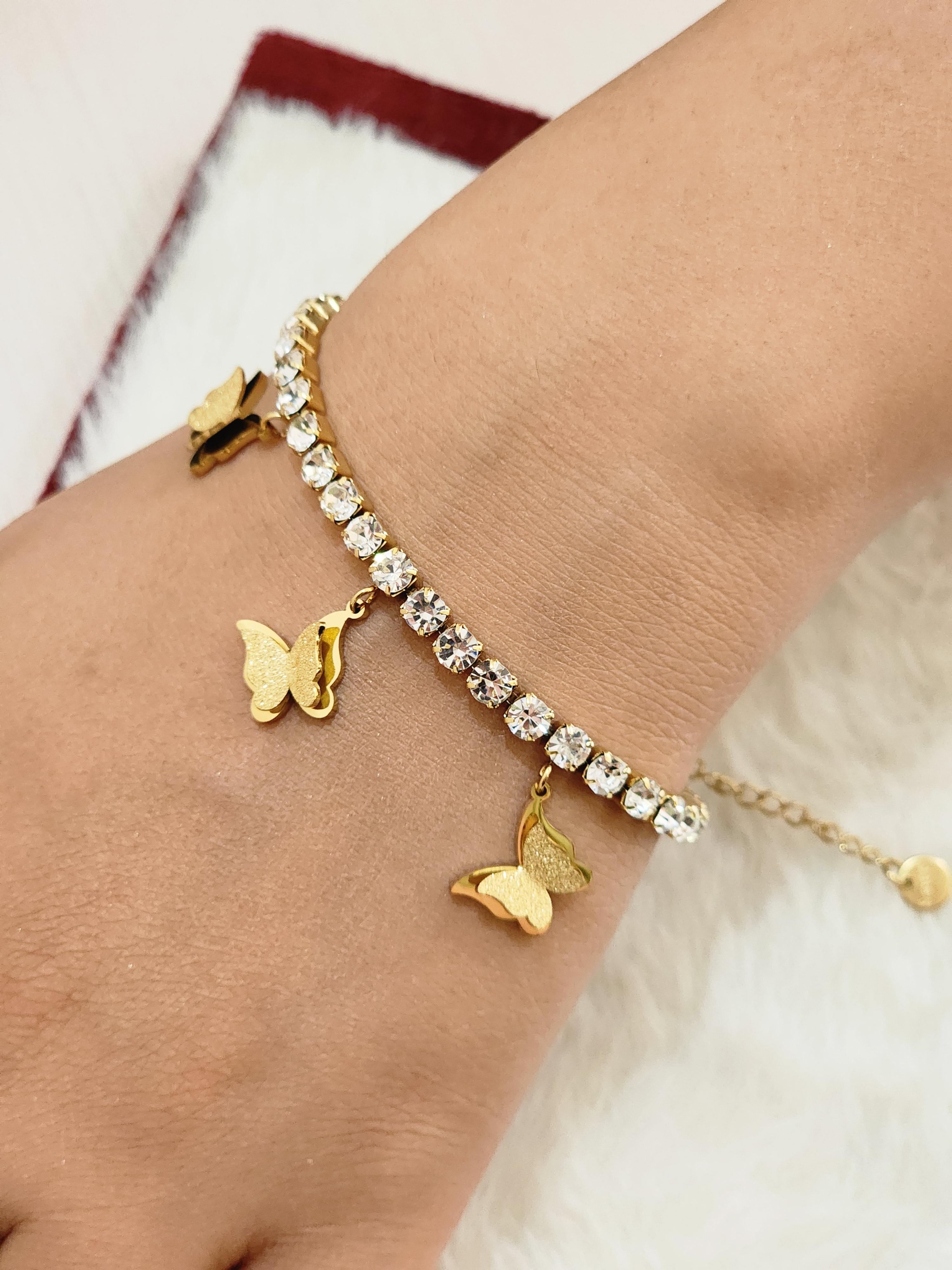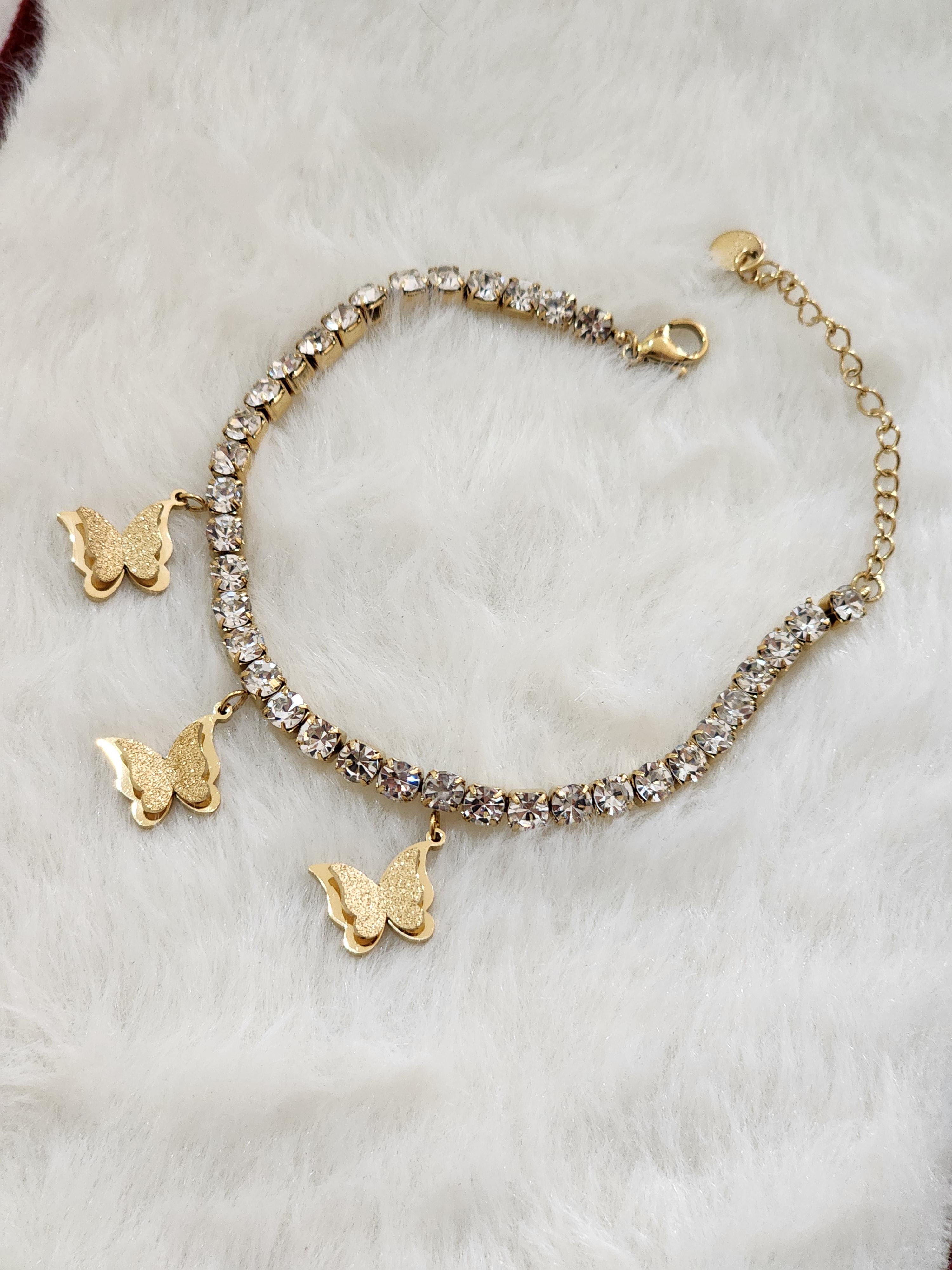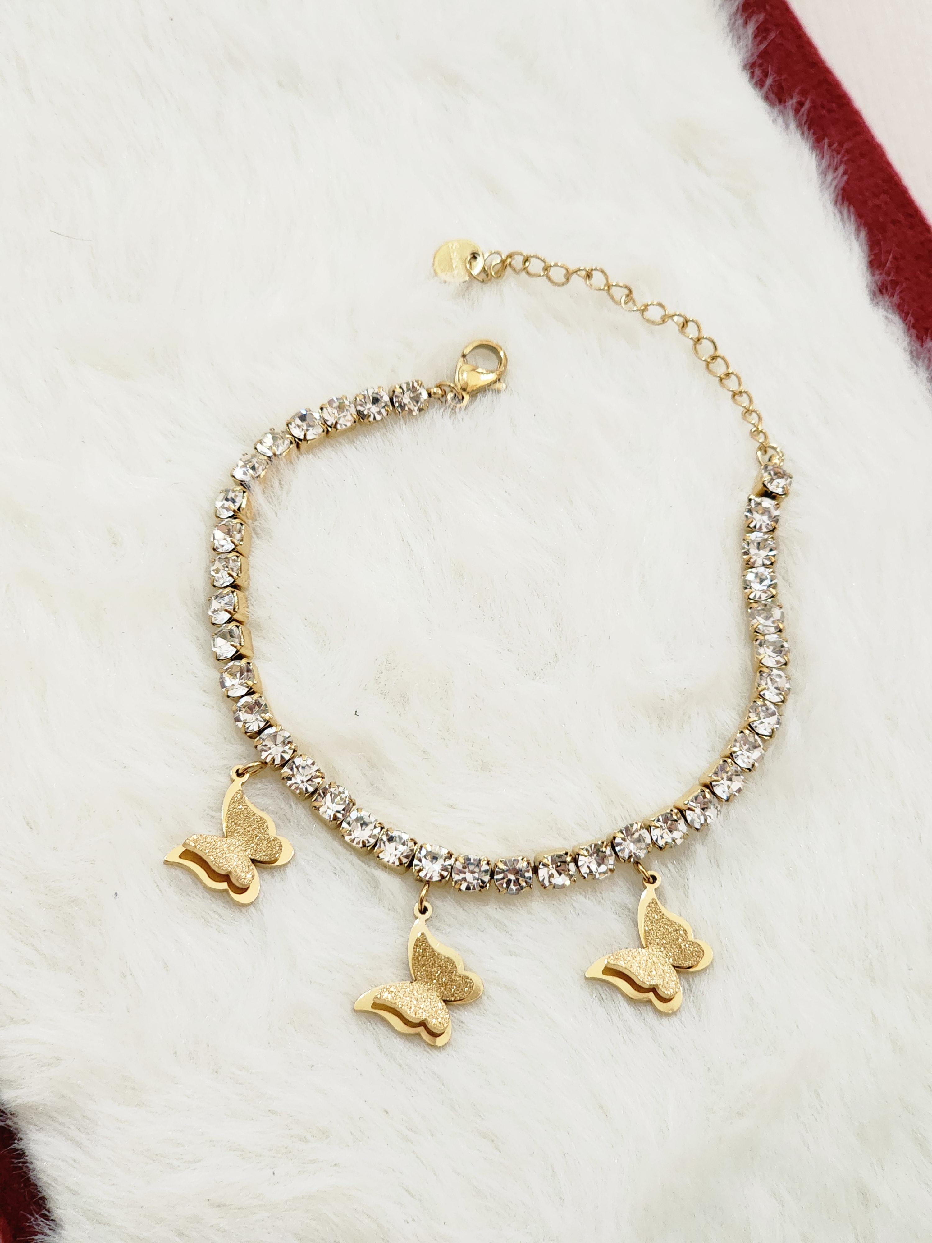 BraceletsMaterial used - Solid Gold Plating, High Quality Stainless Steel, White Crystal Rhinestone Set, High Detailed Finishing, Occasion wear, Anti Tarnish, Anti Rust, Oxidation, Discoloration & Corrosion - Resistant Metal, Waterproof, Hypoallergenic, Durable