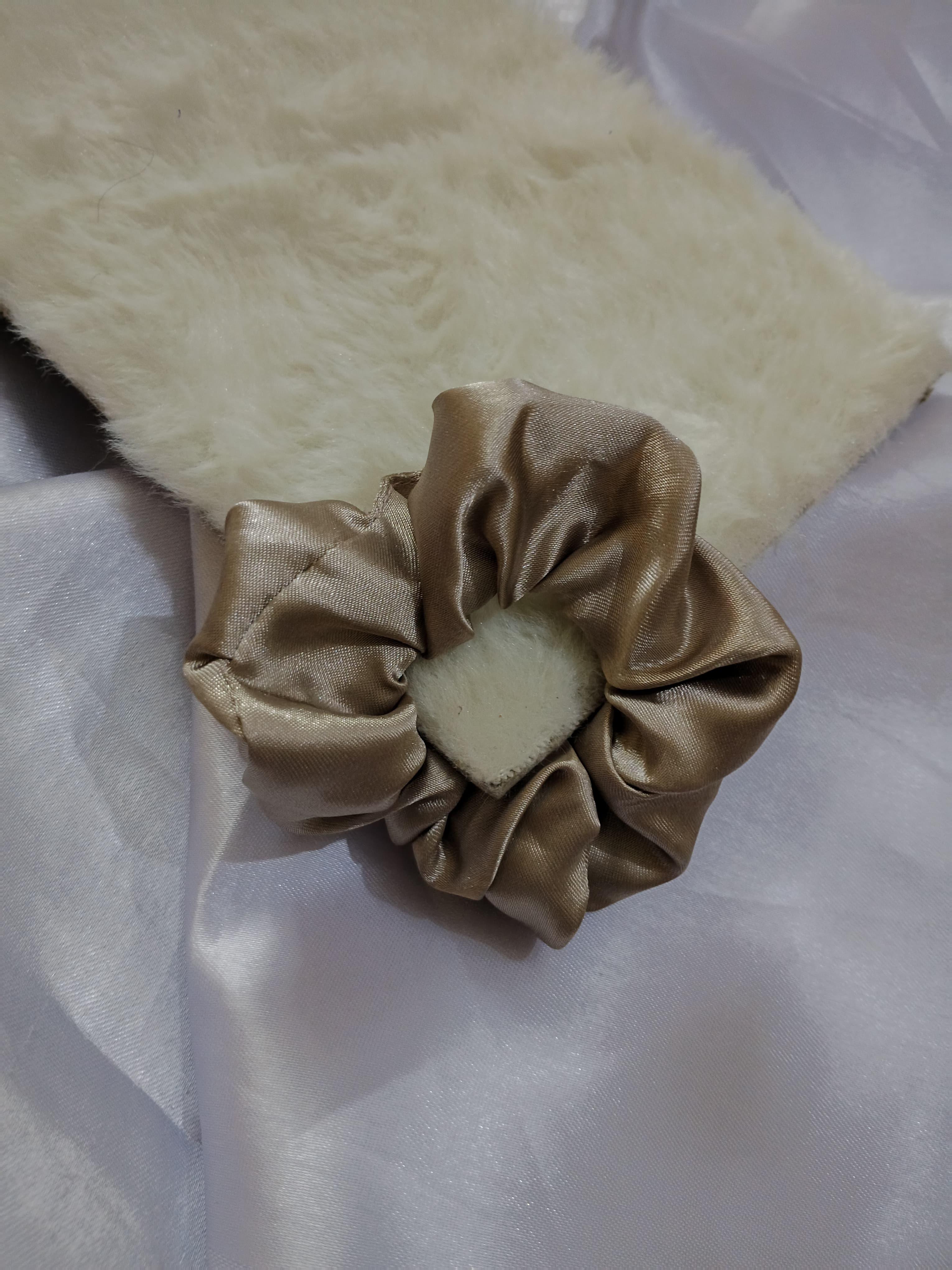 Celebrate everyday glamour with the Champagne Glow Satin Scrunchie Radiating a soft golden-beige sheen, this elegance accessory is a love letter to warm neutrals and understated luxury. It flatters all skin tones and hair colors, offering a seamless blend into both western and traditional looks. Made from Luxe Aabhushan's signature satin, the scrunchie reduces friction prevents hair creases, and offers a secure yet comfortable hold. Whether you're elevating a work ensemble or accessorizing for a celebration Champagne Glow adds that perfect final touch of refined elegance.