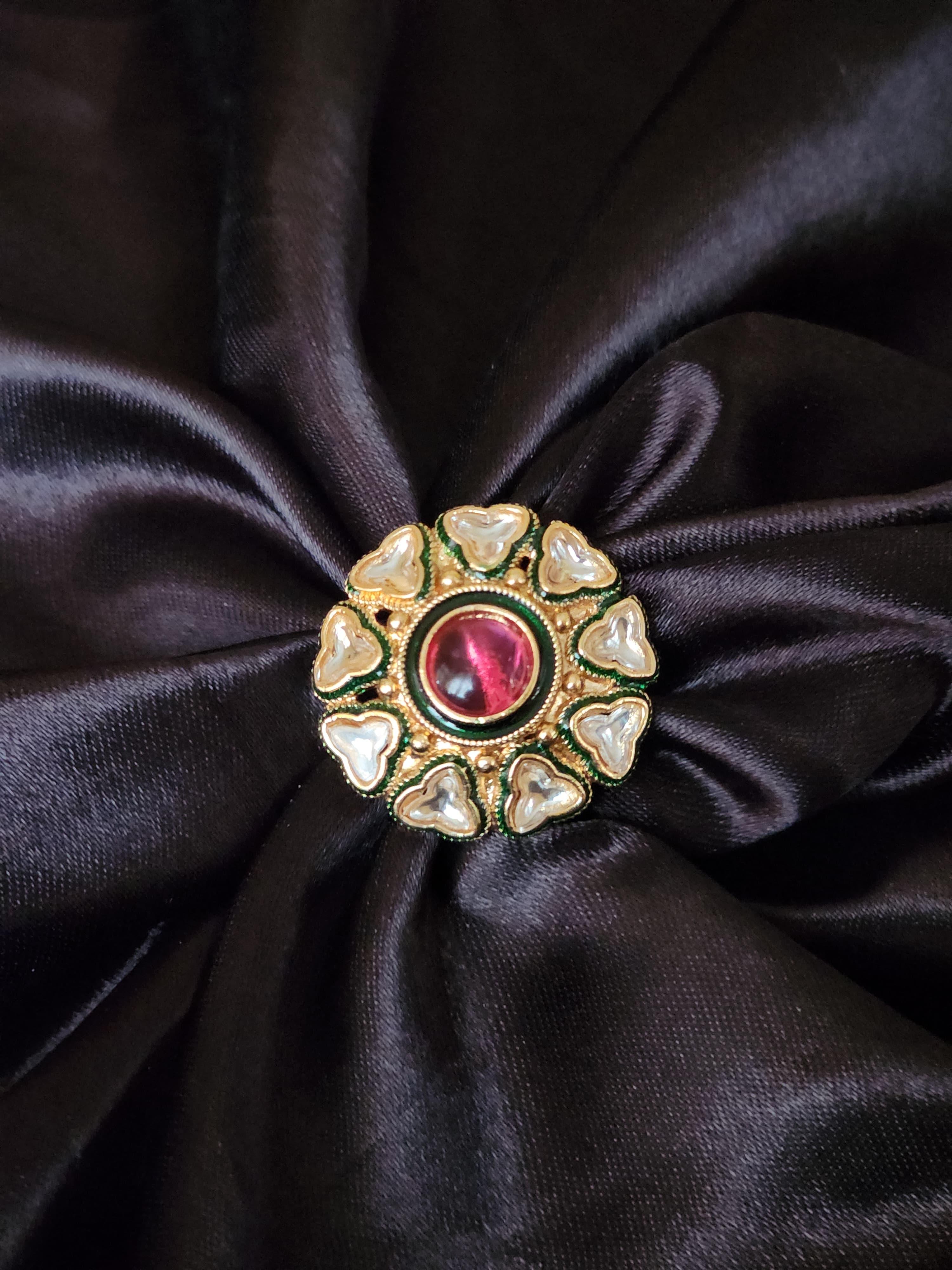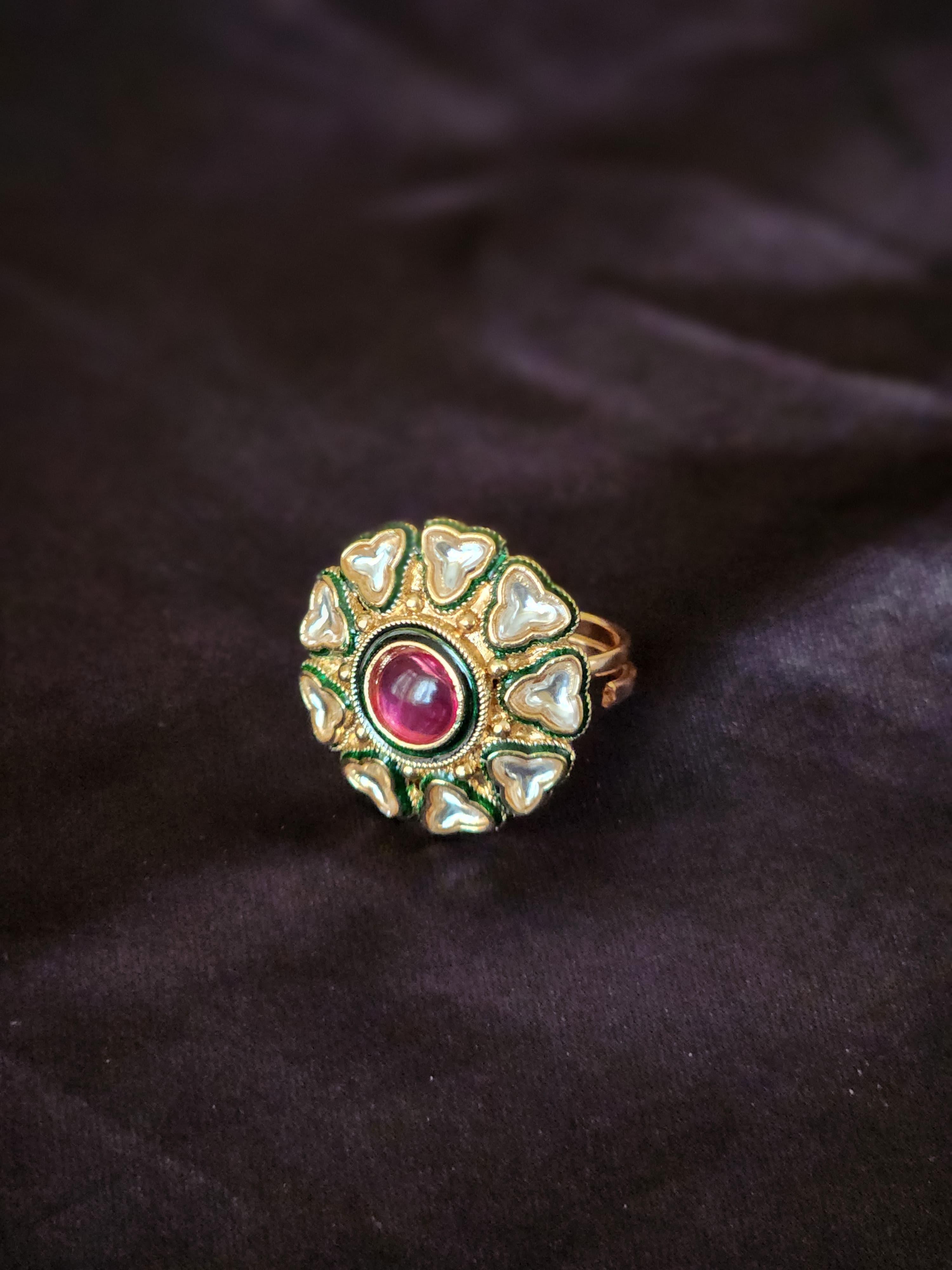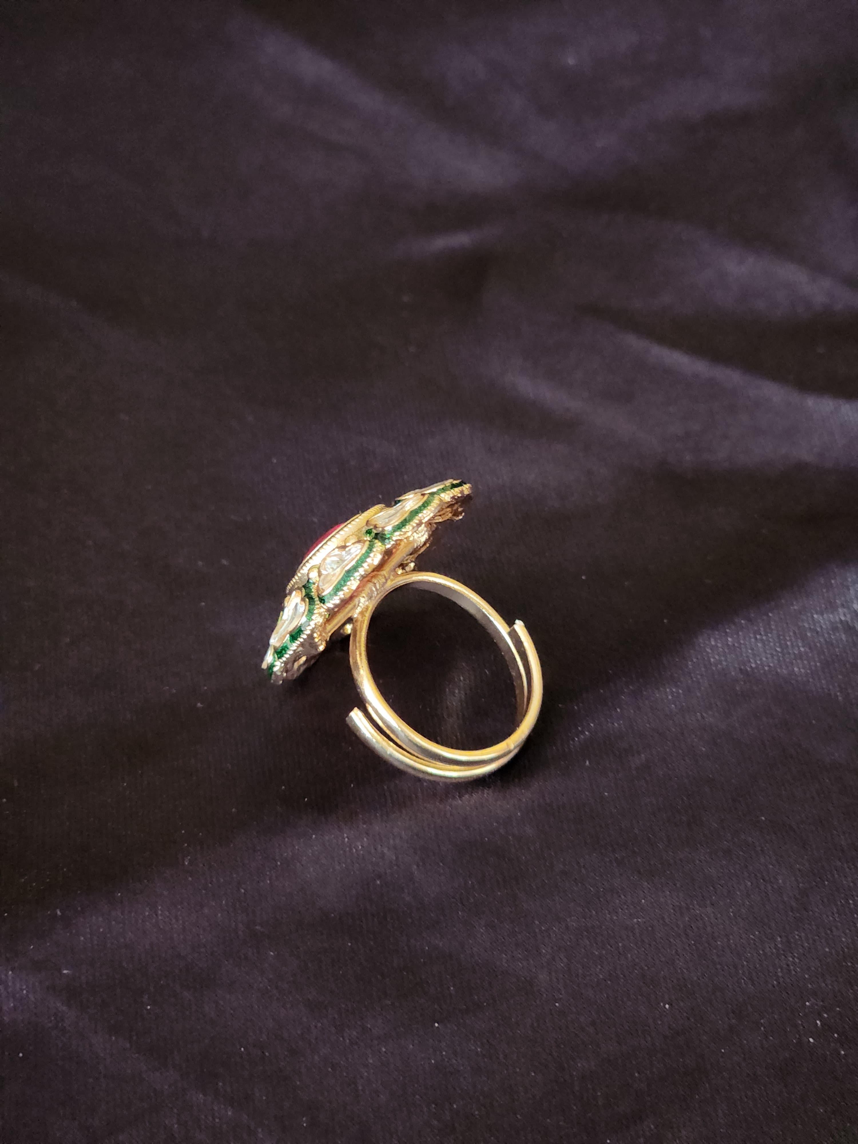 This adjustable statement ring is perfect for pairing with lehengas, sarees, or Indo-western outfits for festive occasions, weddings, or royal-themed events. A conversation starter, it speaks volumes about heritage, grace, and bold feminine elegance.