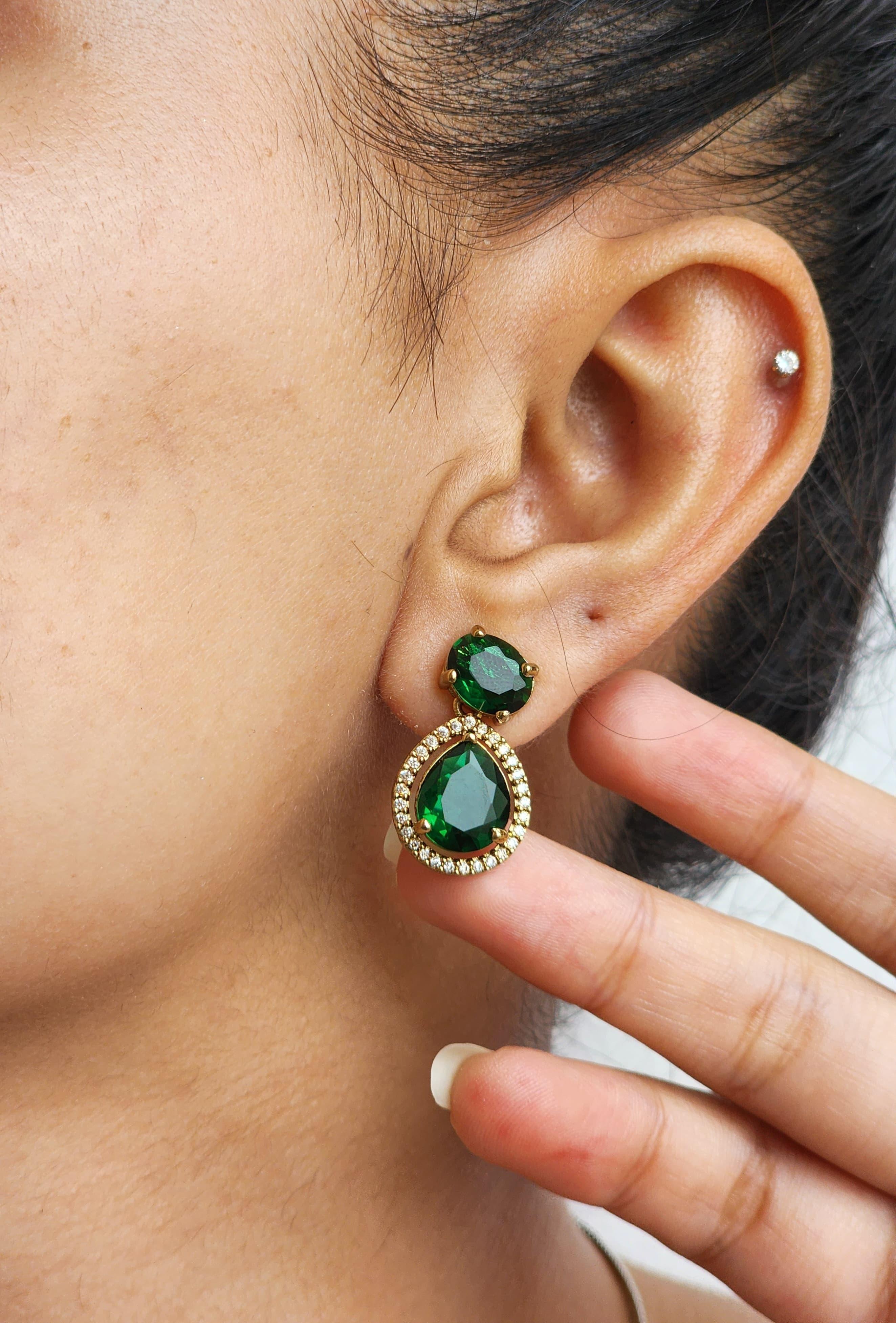 Emerald-Green Simulated Stones (Oval & Teardrop Cut)