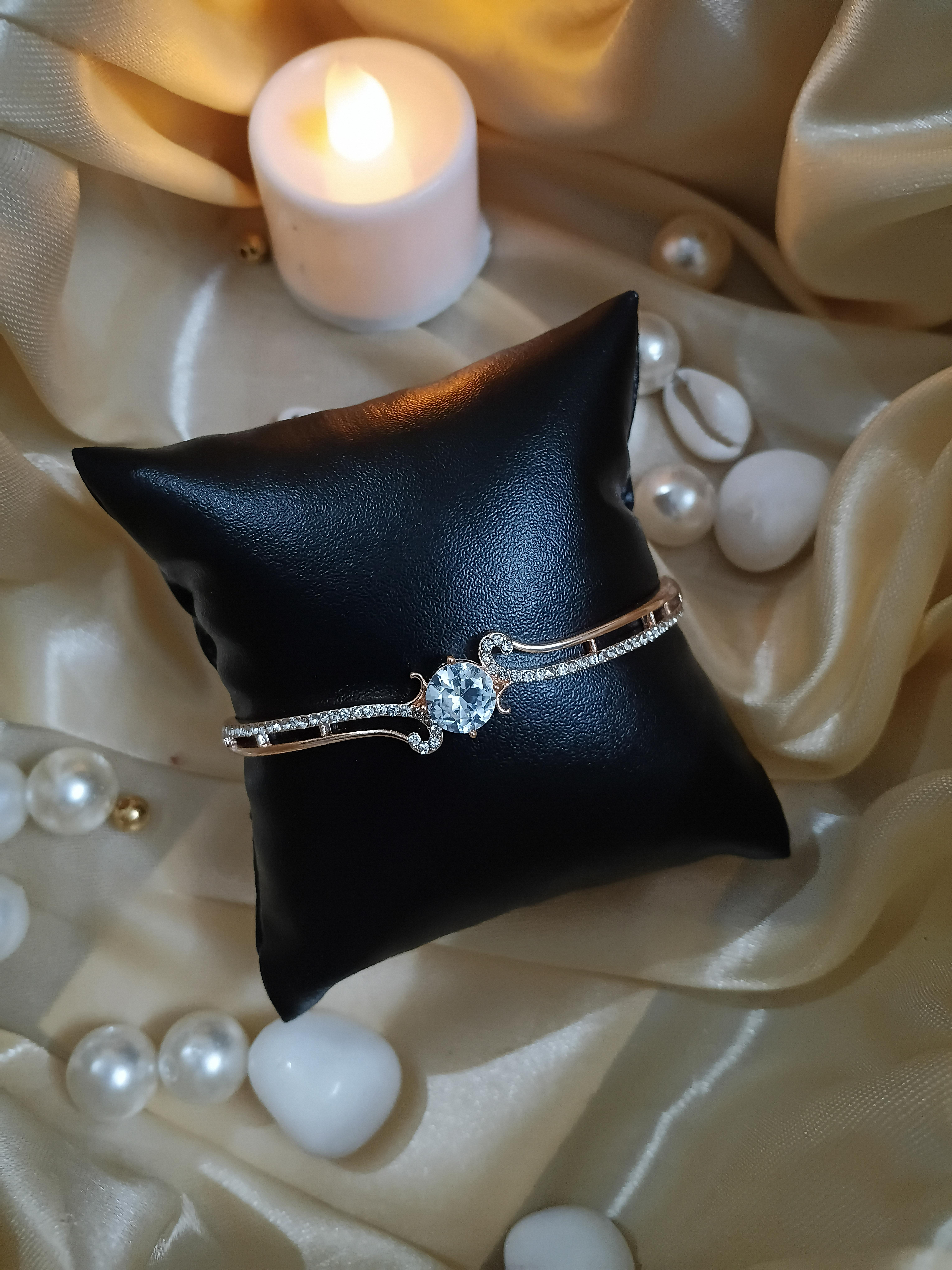 Elevate your look with this stunning Rose Gold Plated American Diamond Bracelet, designed to bring effortless elegance to any ensemble. Sparkling American diamonds catch the light with every movement, while delicate pearls add a timeless, classic charm. The sleek magnetic lock ensures both comfort and a secure fit, making it perfect for both everyday glam and special occasions. A perfect balance of modern shine and vintage grace—your wrist's new favorite statement.