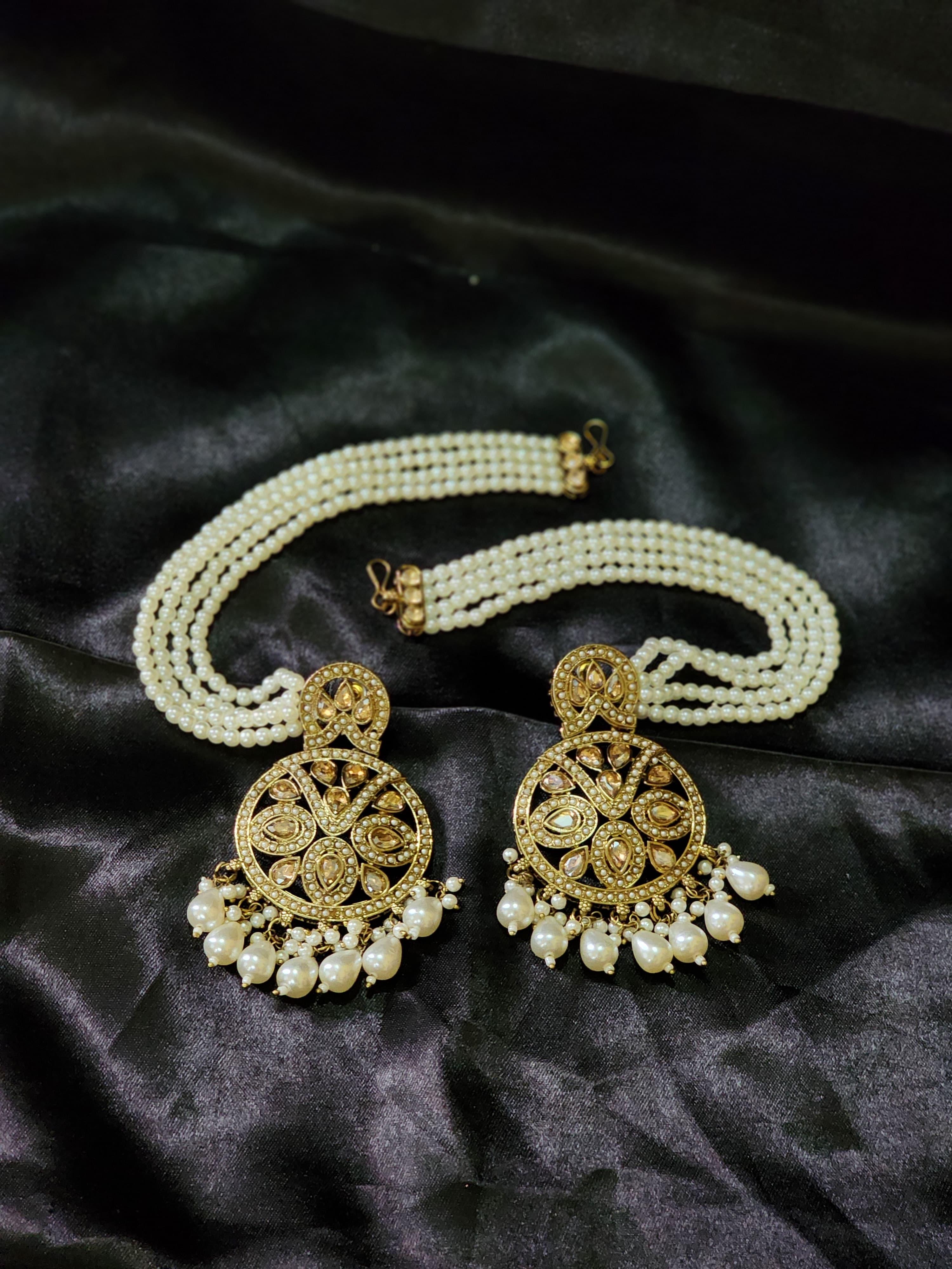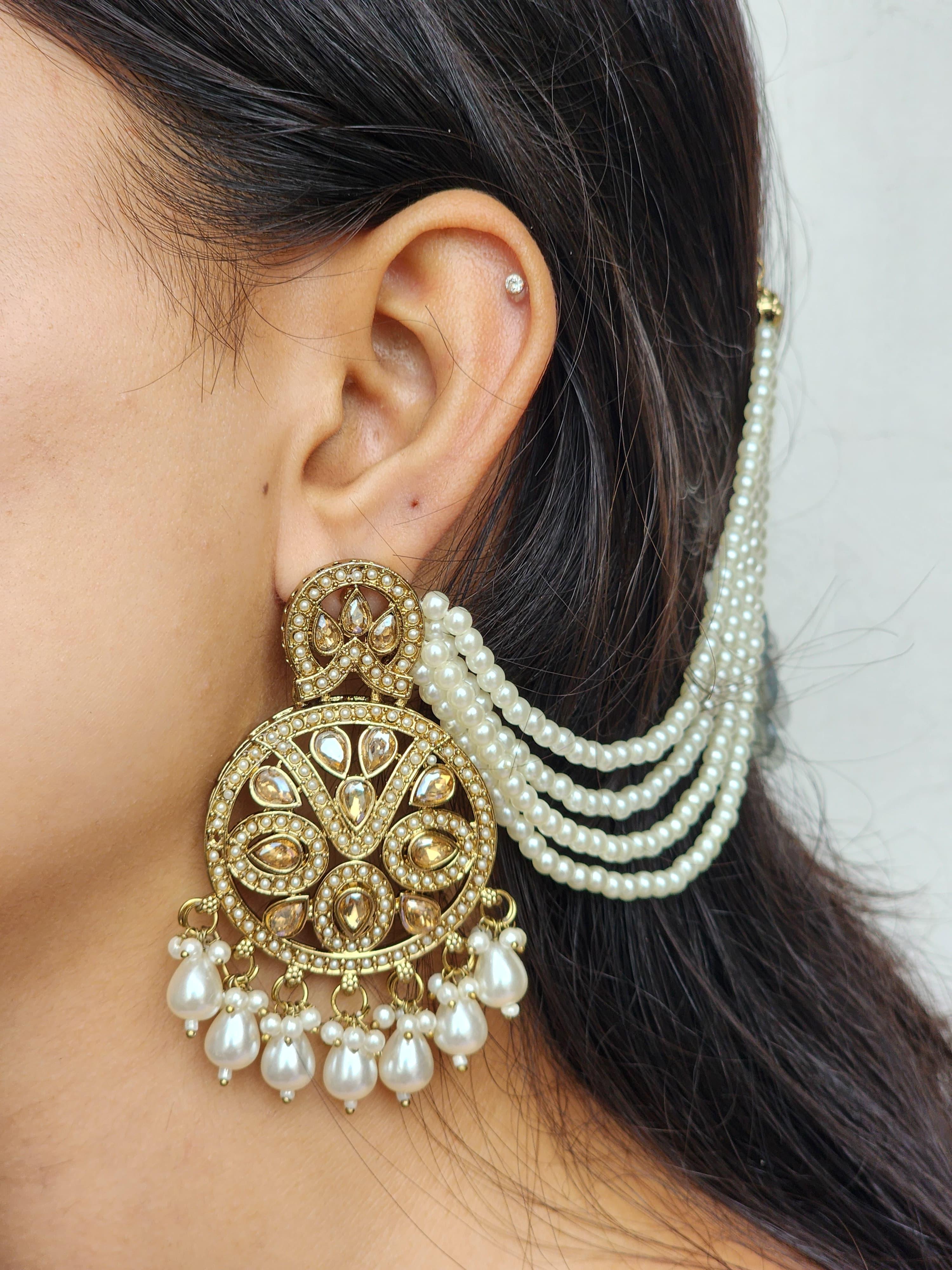 Elevate your elegance with the Pearl Adorned Vintage Chandelier Earrings from Luxe Aabhushan, an exquisite blend of classic craftsmanship and modern charm. These stunning earrings feature intricate gold-plated detailing, adorned with an array of gleaming faux diamonds and delicate pearls. Designed to make a statement, the earrings showcase a timeless chandelier pattern that gracefully dangles, creating a perfect balance of sophistication and traditional allure. The carefully crafted pearls add a soft, feminine touch, ideal for weddings, festive celebrations, or any special occasion where you wish to stand out.