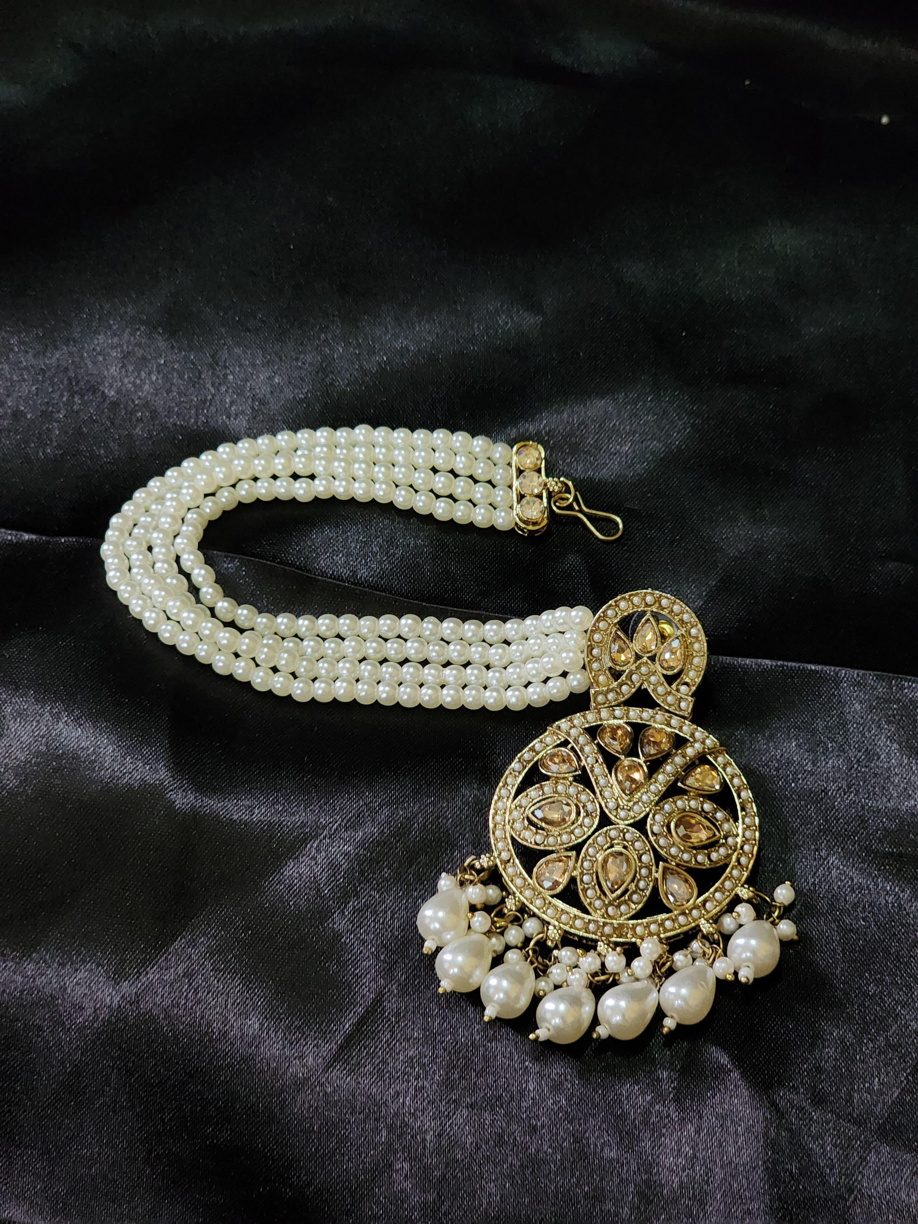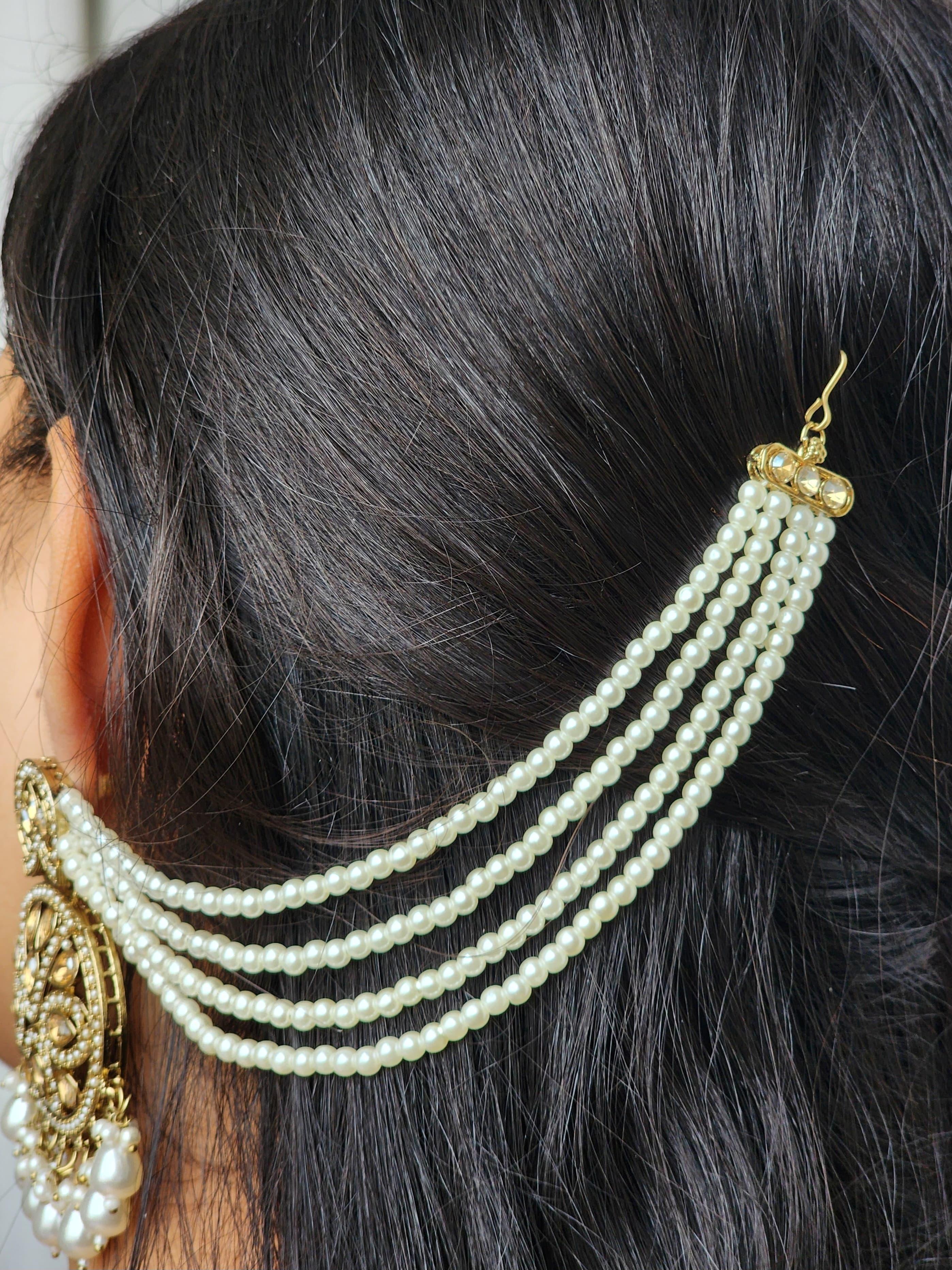 * Elegant pearl beads that delicately hang from the earrings’ base.