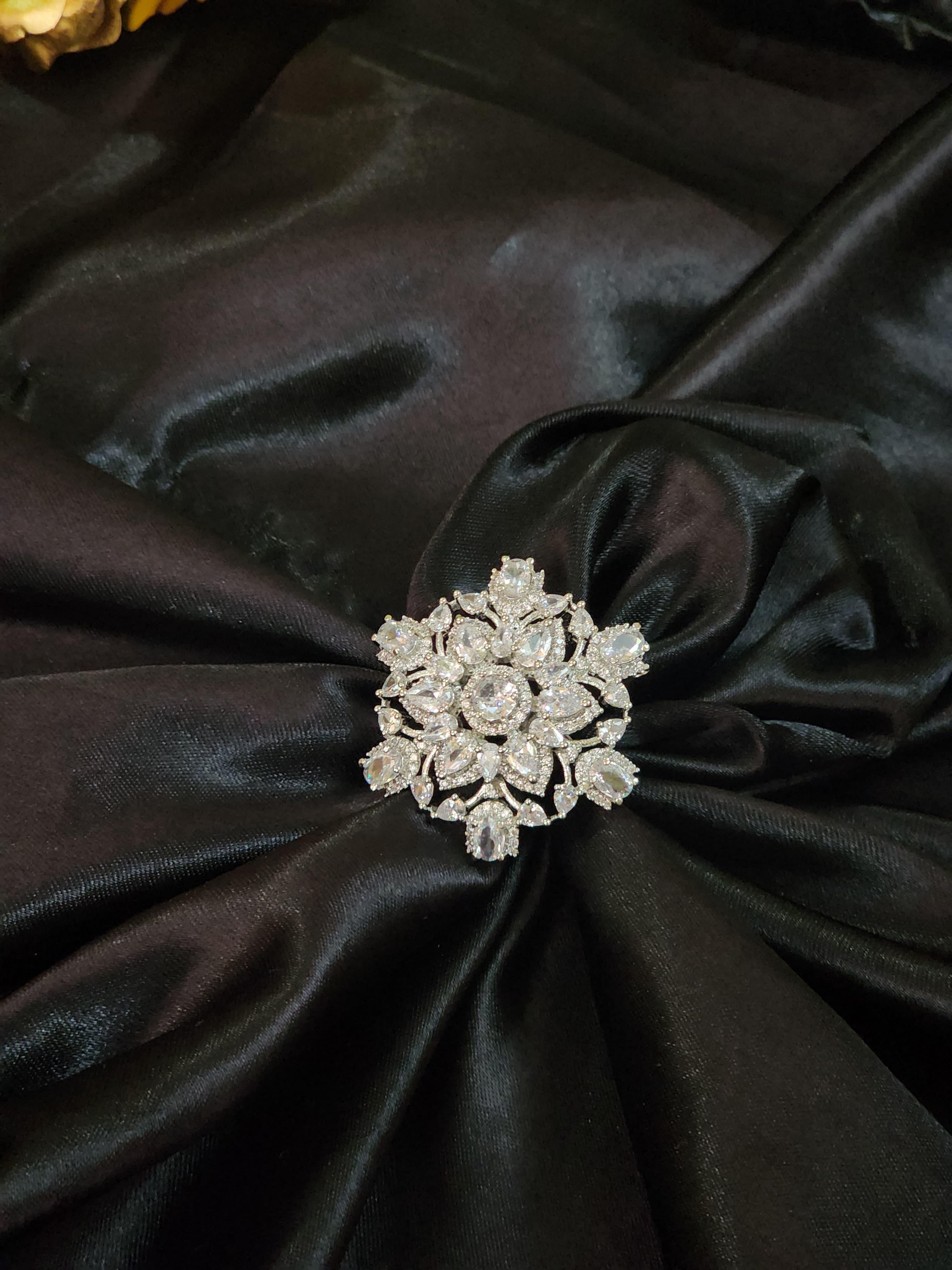 Its oversized silhouette and intricately layered petals create a dramatic impact, making it the perfect conversation starter for weddings, festive celebrations, or evening soirees. The adjustable band ensures a comfortable fit, while the anti-tarnish finish guarantees lasting brilliance.