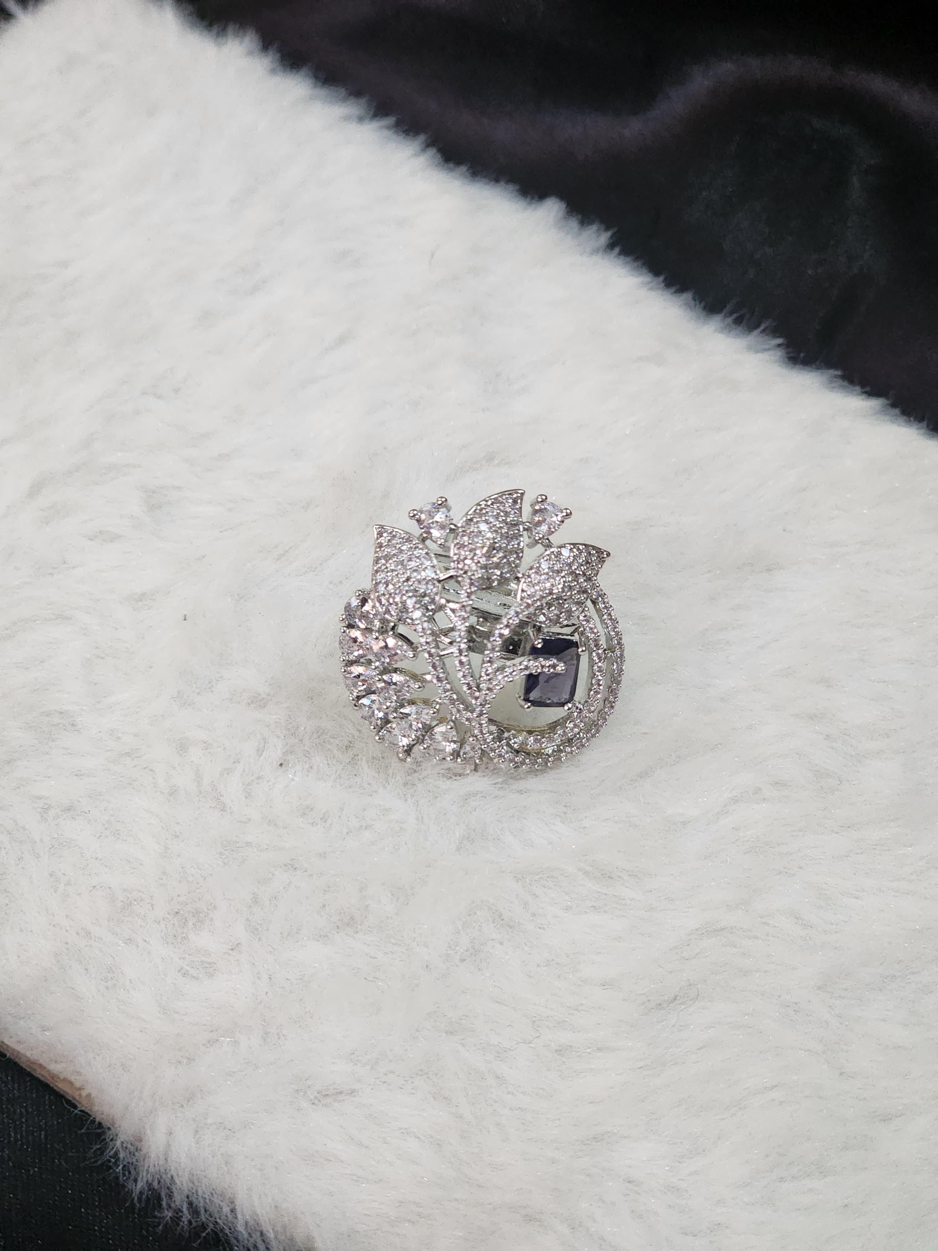 Whether styled with contemporary evening wear or classic ethnic attire, the Celestia Amethyst Bloom Ring adds a graceful sparkle and a regal finish to your ensemble.