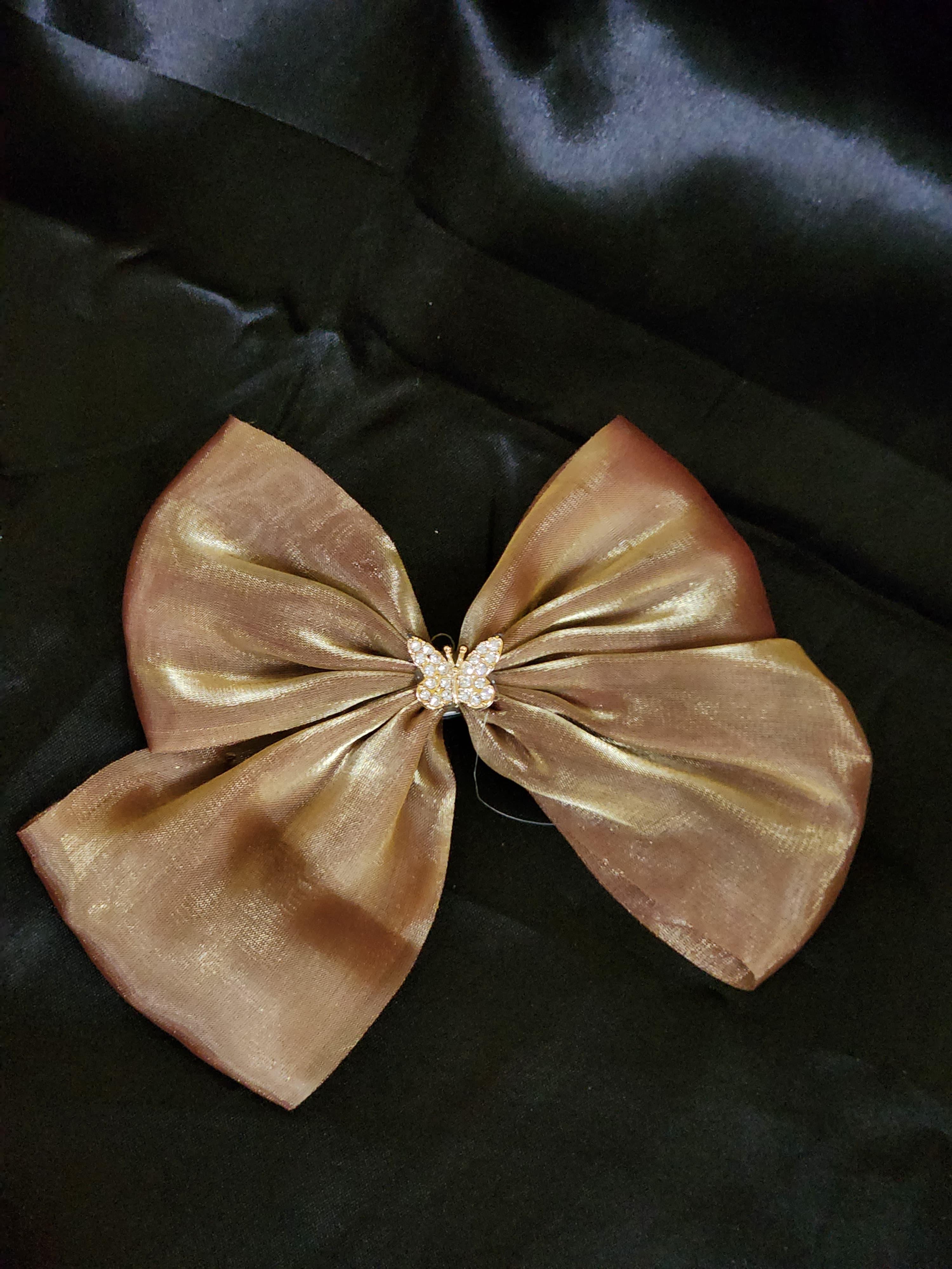 Elegant and poised, Champagne Truffle exudes refined luxury. The creamy beige shimmer fabric pairs beautifully with the ornate butterfly, creating a bow clip that complements festive attire and bridal wear with ease.