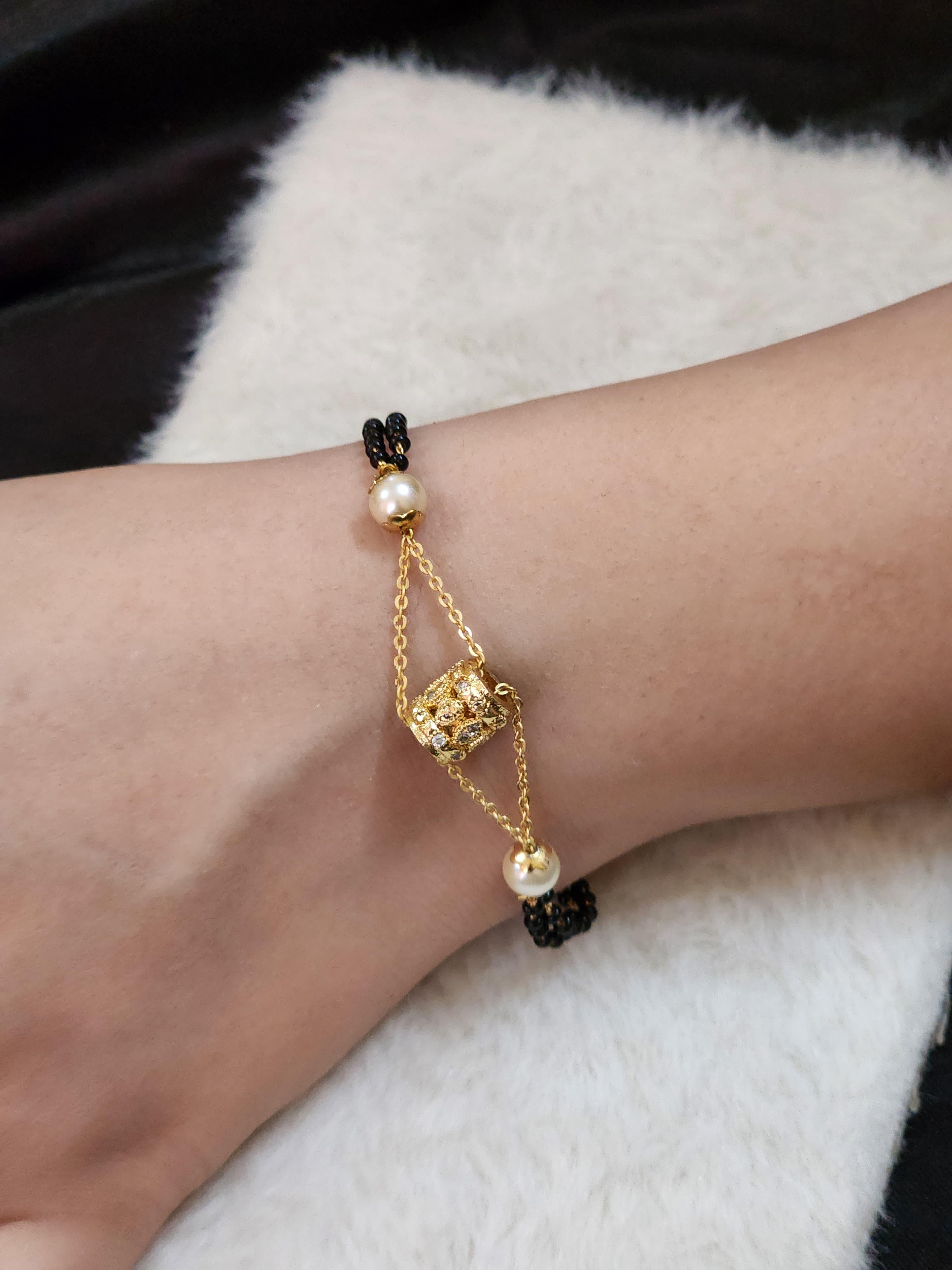 Introducing the Divya Sutra Mangalsutra Bracelet by Luxe Aabhushan — a divine fusion of tradition and modern elegance. Crafted to embody the sacred bond of love and protection, this designer bracelet redefines cultural grace with a contemporary twist, making it a perfect everyday adornment for the modern bride.