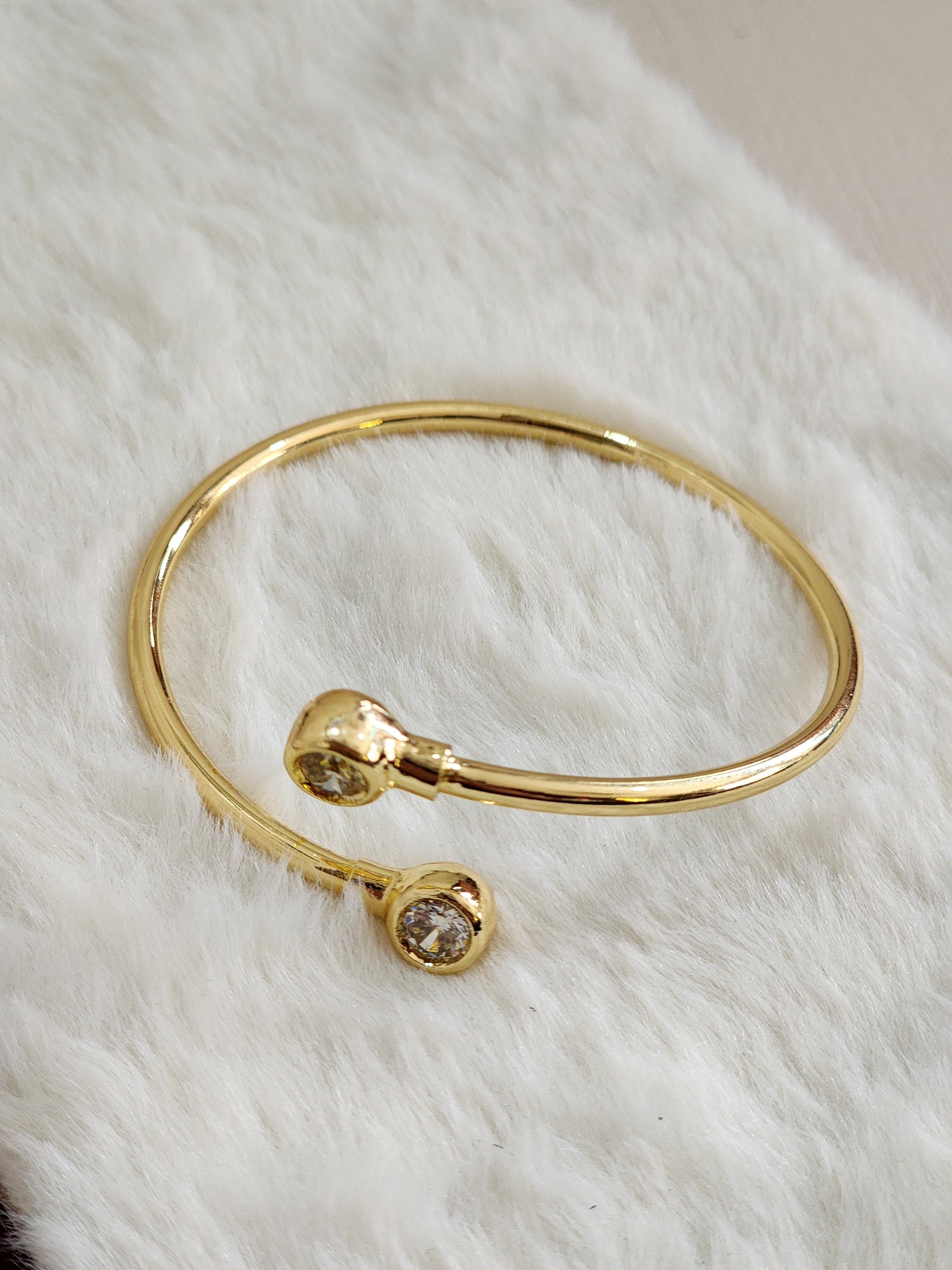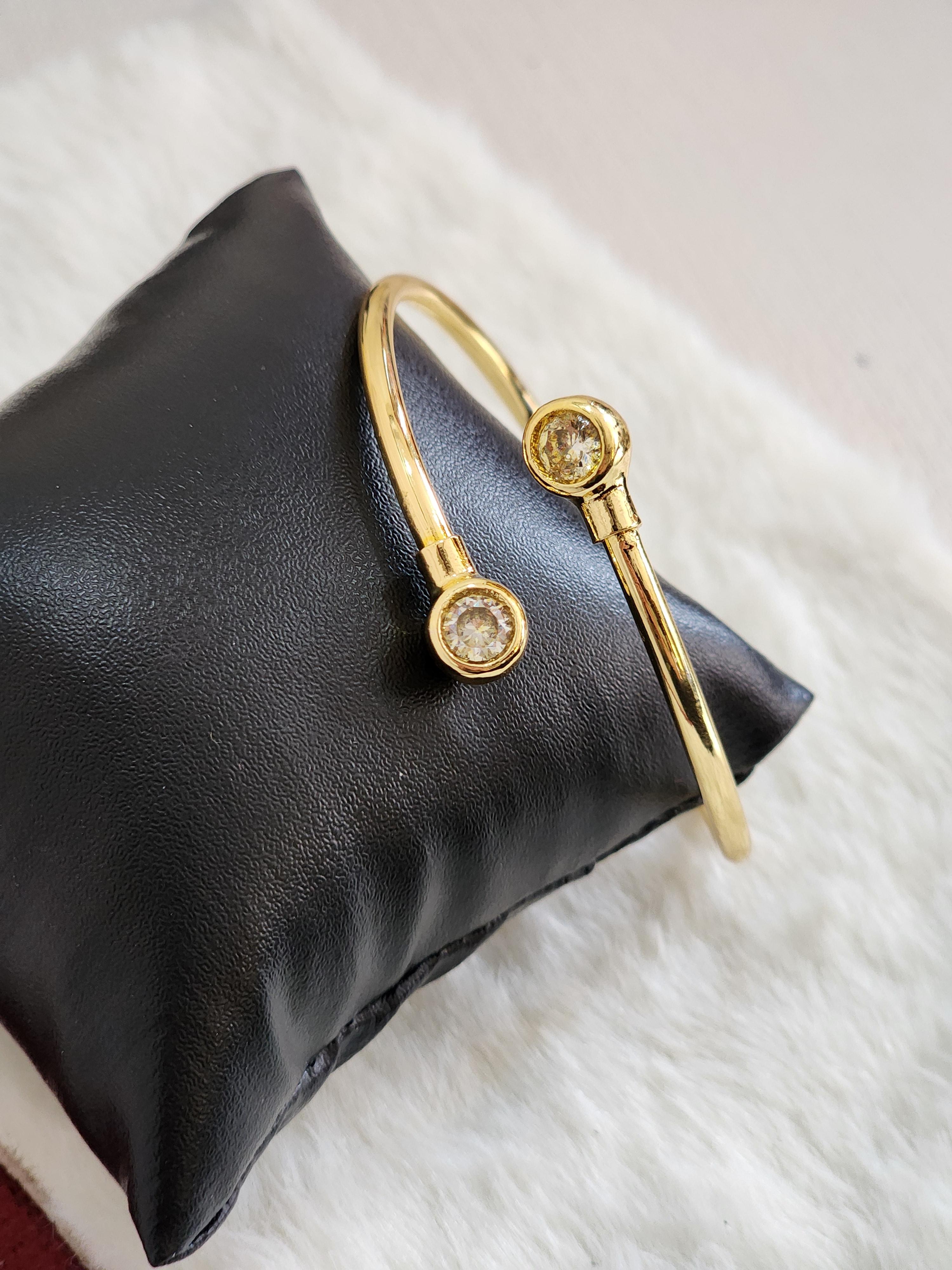 BraceletsMaterial used - A solid 22k Gold Plating Bracelet, High Quality Stainless Steel, Embellished With Cubic Zirconia Crystals On Each Ends, High Polish, Classic Everyday Luxury, Anti Tarnish, Anti Rust, Oxidation, Discoloration & Corrosion - Resistant Metal, Waterproof, Hypoallergenic, Durable