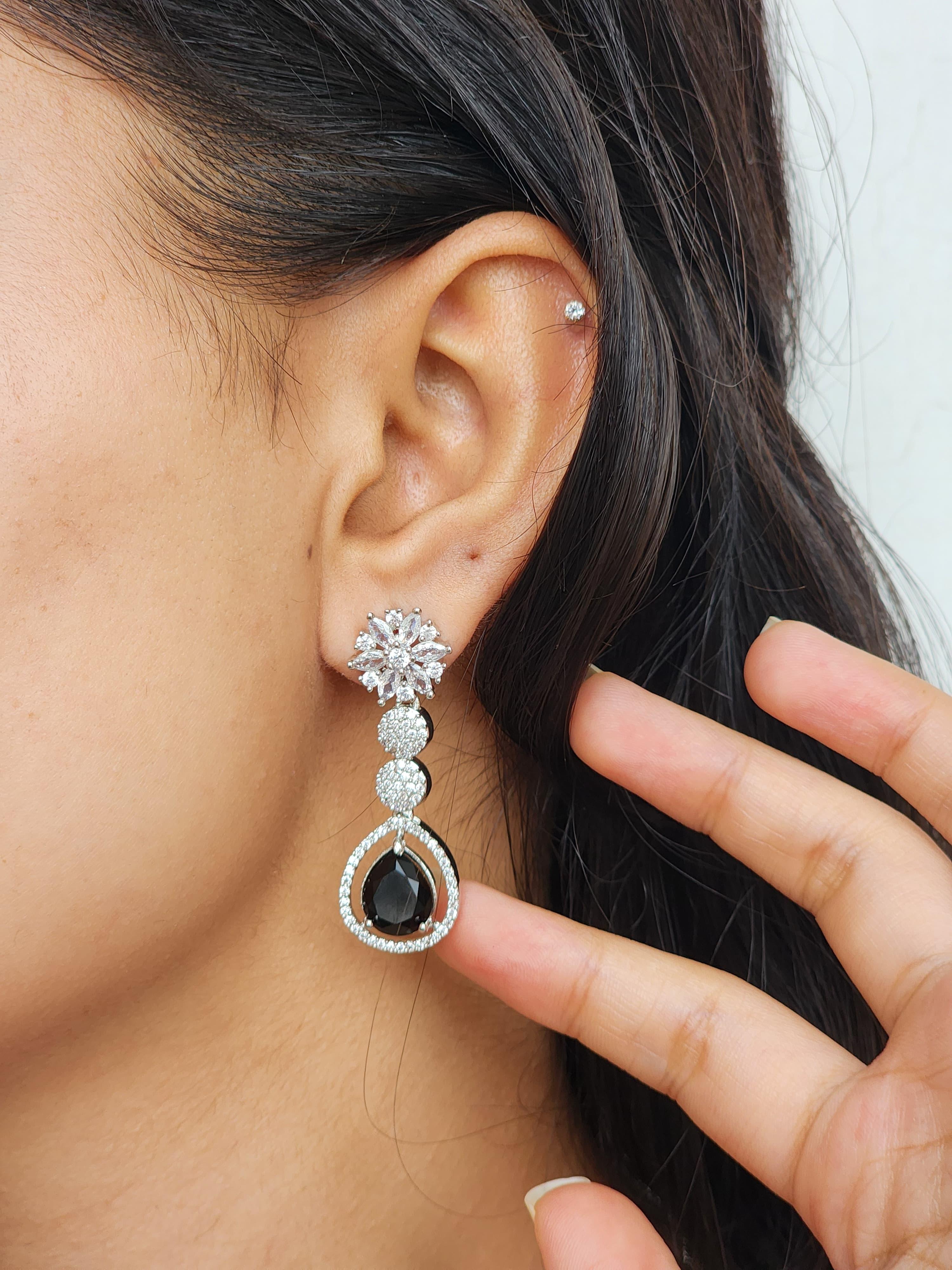 Elevate your ensemble with the Noir Étoile American Diamond Necklace Set by Luxe Aabhushan — a true embodiment of bold sophistication and modern elegance. This striking set is crafted for women who command attention with effortless grace.