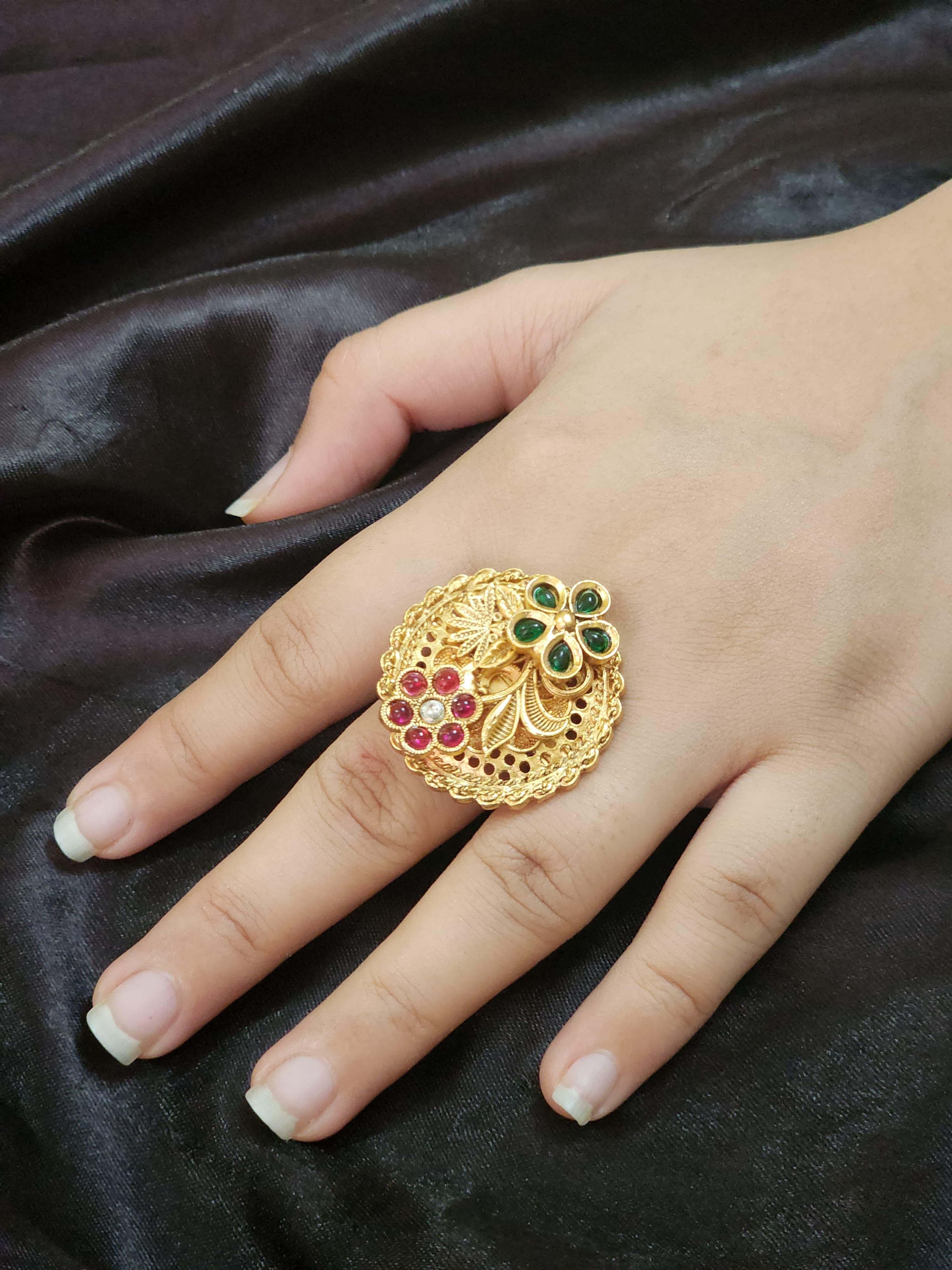 Channel the opulence of royal heritage with the Rajputana Meenakari Statement Ring by Luxe Aabhushan – a striking blend of traditional artistry and regal allure. Inspired by the intricate charm of vintage Indian craftsmanship, this bold ring captures the essence of grandeur with a contemporary touch.