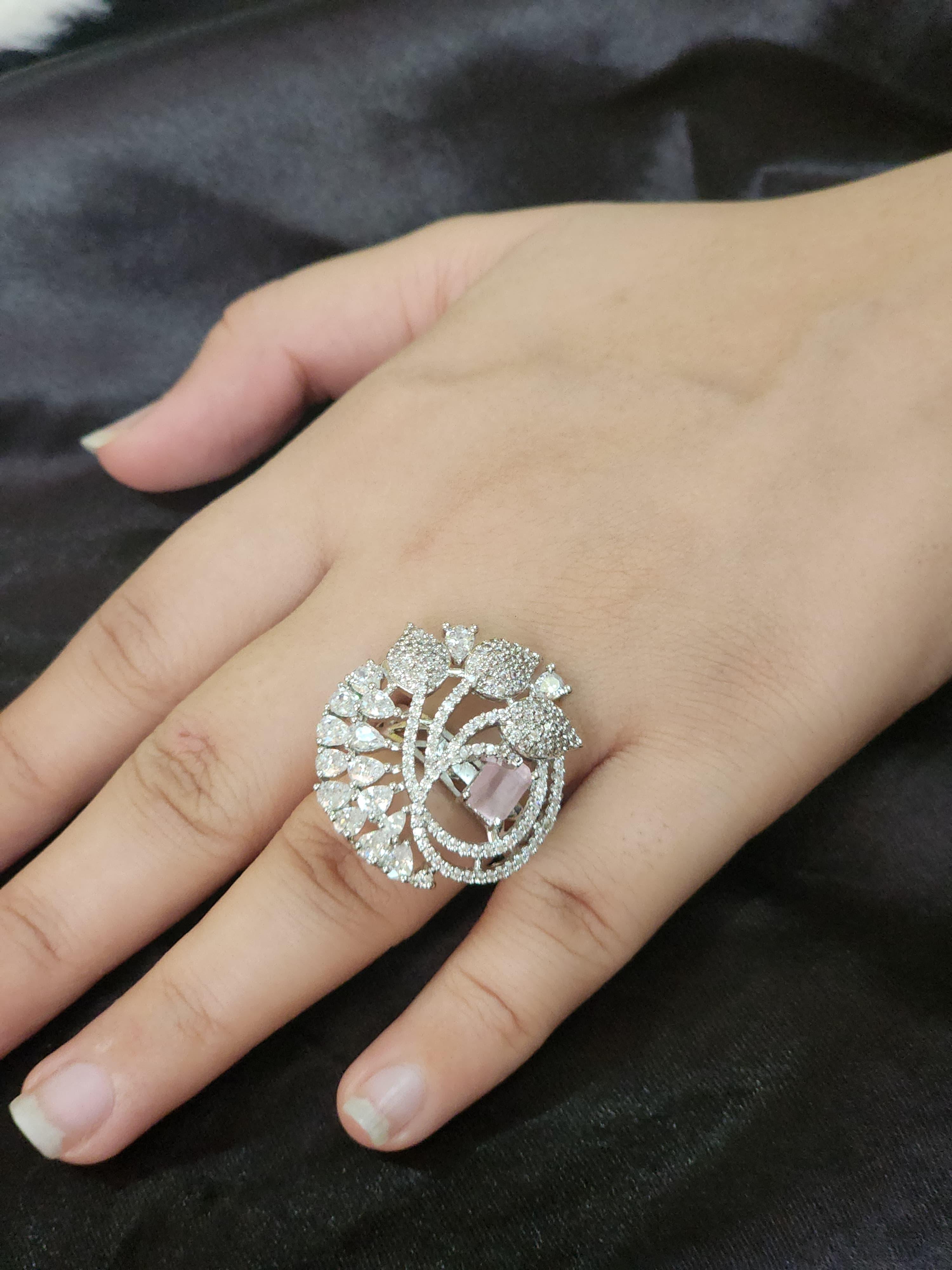 Rings*Material: Premium Copper Alloy with Rhodium Finish, AAA+ Cubic Zirconia, Blush Pink Crystal