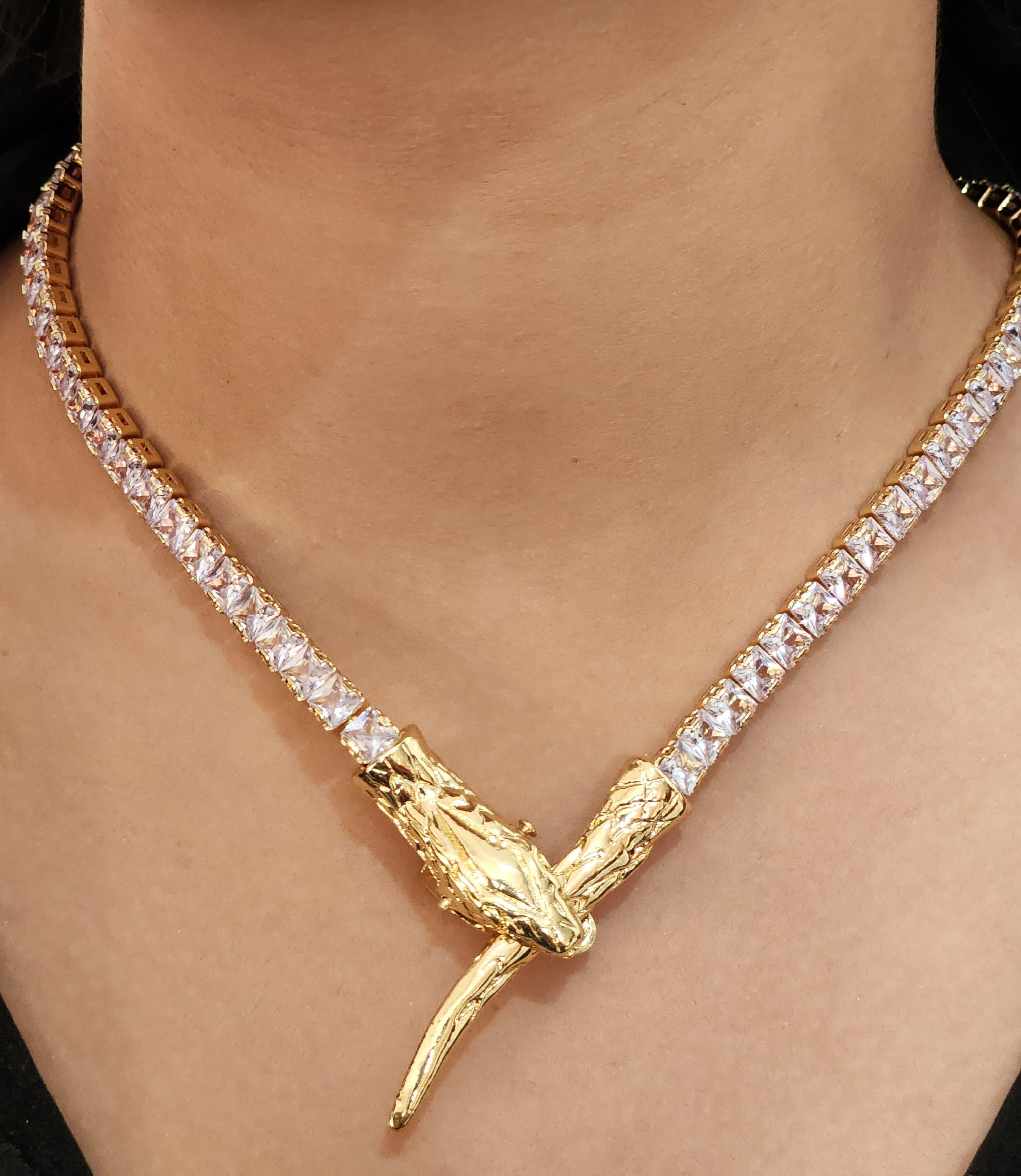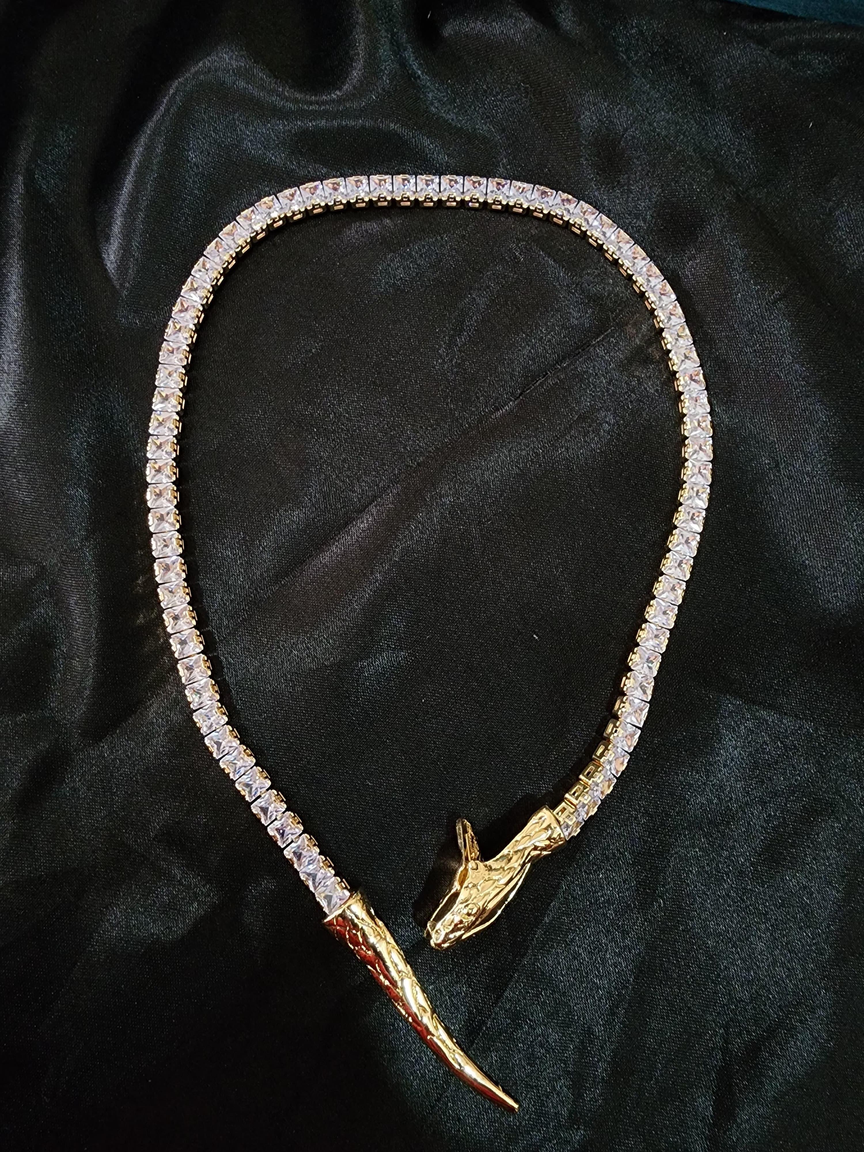 Make a bold statement with Luxe Aabhushan’s Serpentine Radiance Choker Necklace — a perfect fusion of opulence, craftsmanship, and fierce elegance. Designed to captivate, this choker features a stunning dual serpent-head motif at the center, symbolizing power, protection, and transformation. The serpents wrap gracefully into each other, forming a secure clasp that enhances both the beauty and the uniqueness of the piece.
